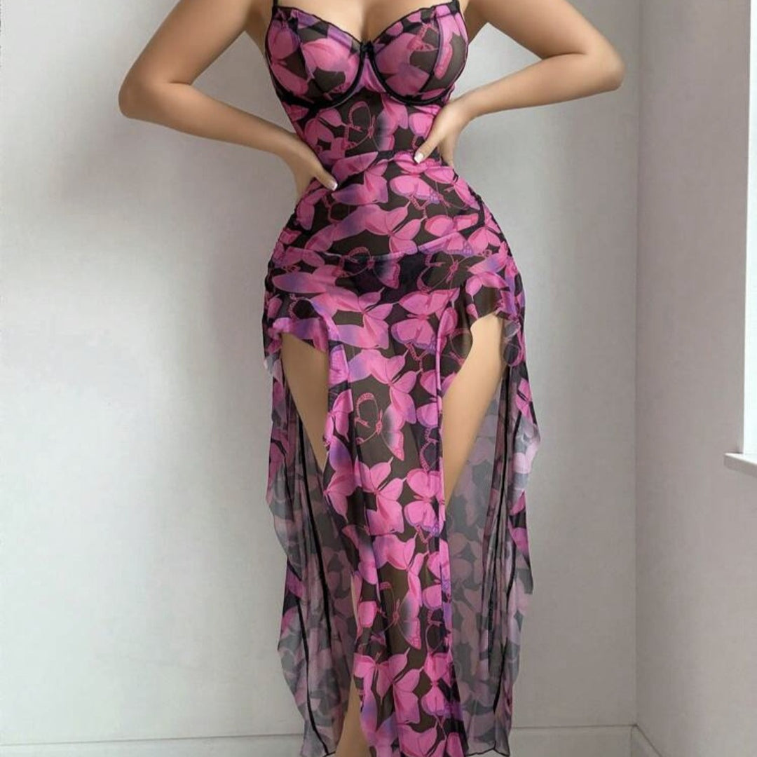 Erotic Lingerie Sexy Pure Desire Butterfly Spaghetti Strap Long Dress