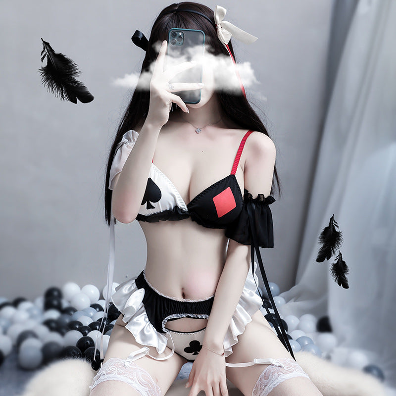 Sexy Three-Point Card-Themed Lingerie Costume Nightdress Set with Headband & Shoulder Rings