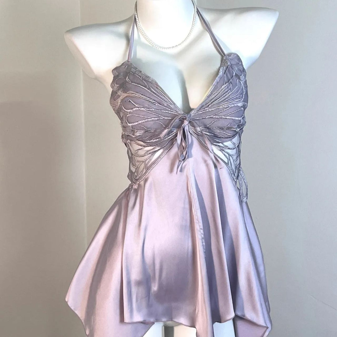 Sexy Ice Silk Lace Nightdress – Low Cut Spaghetti Strap Sleepwear
